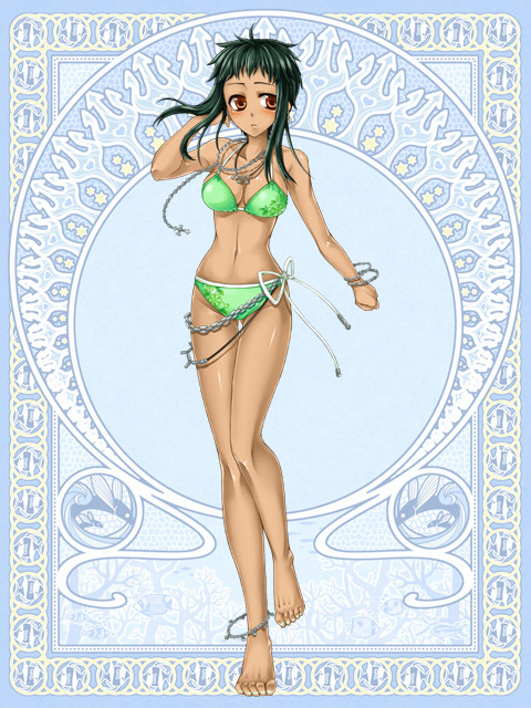 ただ、緑が好きだったからこの色の、水着なだけで…。