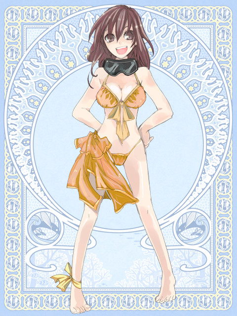 私も水着の色と、ビキニだってことしか描いてないな。あぁそれと、首にゴーグル。